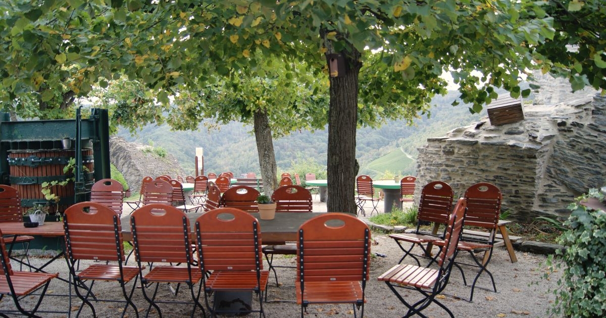 Biergarten bei der Grevenburg hoch über Trarbach